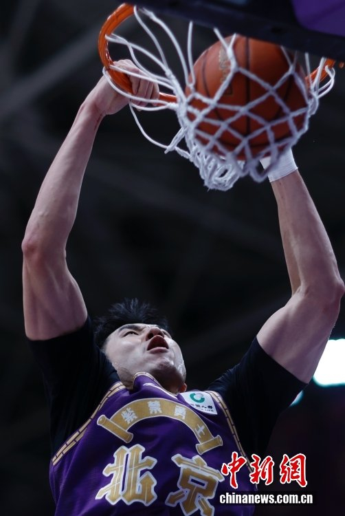 1月21日,在北京奥体中心体育馆举行的2025-2026中国男子篮球职业联赛(CBA)常规赛比赛中,北京控股队主场79比102负于浙江方兴渡队。图为北京控股队邹雨宸在比赛中扣篮。中新社记者 韩海丹 摄